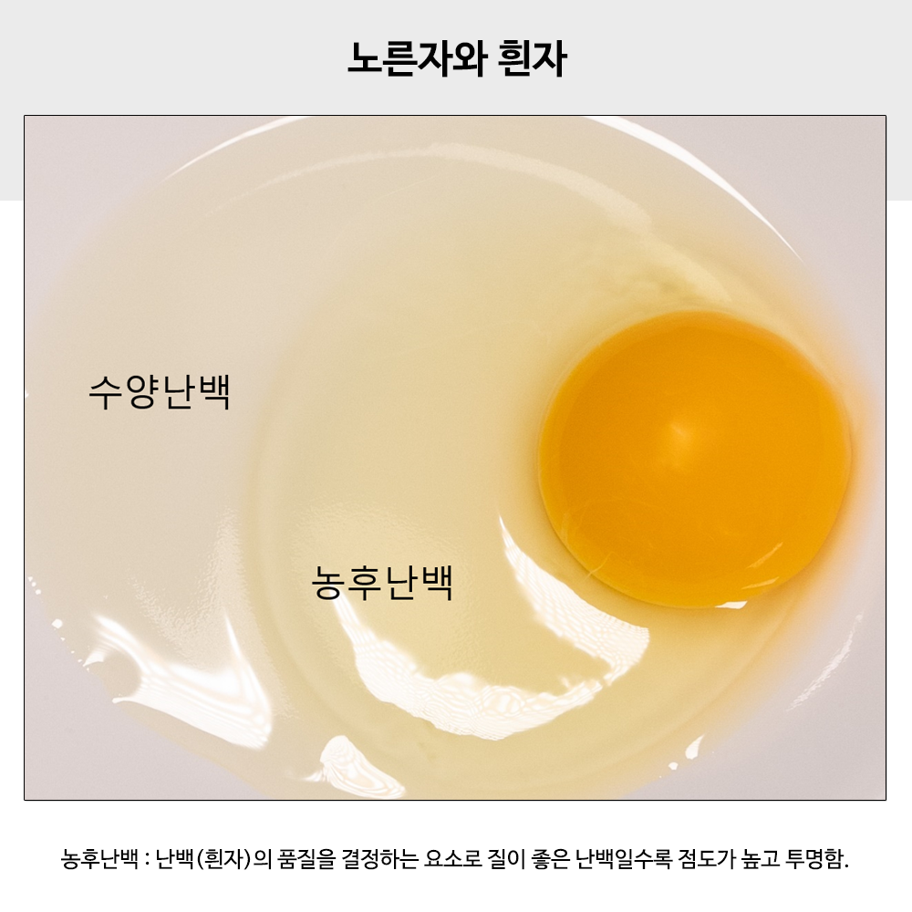 - 달걀은 시간이 지남에 따라 혹은 보관이 잘못될 경우 난백이 묽어져서 난백의 높이가 점차 낮아진다.