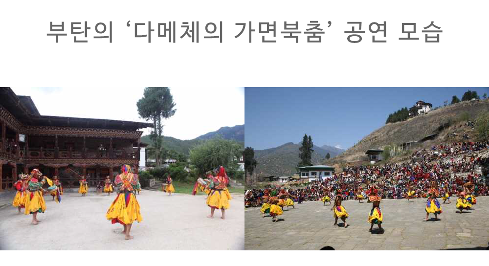 이번에 초청되는 태국의 ‘콘’(Khon)과 부탄의 ‘다메체(Drametse) 가면북춤’은 두 나라에게 있어 유네스코 인류무형문화유산 대표목록에 유일하게 등재된 종목들입니다. 그만큼 자국을 대표하는 무형유산으로, 두 종목 모두 왕실이 중심이 되어 국가적 차원에서 특별히 보호·전승되는 의미 있는 것들입니다.