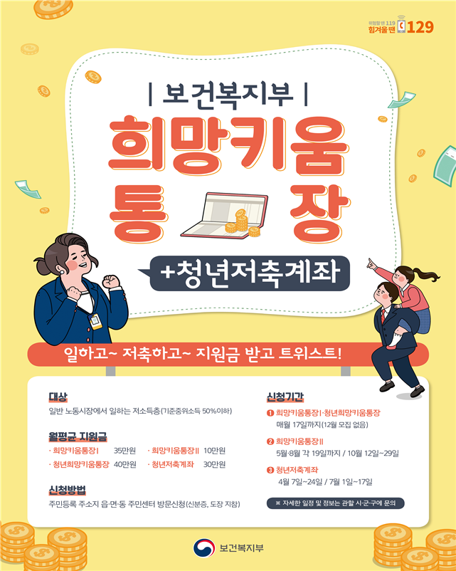 #보건복지부 #희망키움통장 #청년저축계좌 #자산형성지원제도 #자산형성지원사업 #정부지원사업 #정부지원금