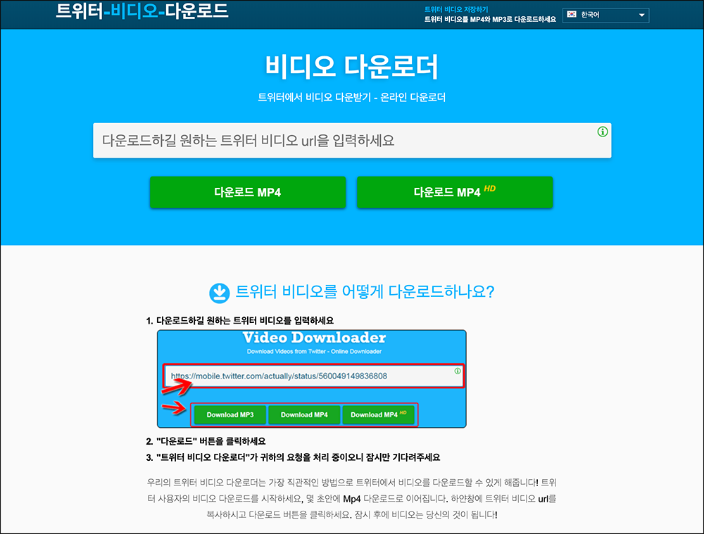 이 웹 사이트에서 트위터 동영상을 다운로드 할 수 있습니다. 전용어플 없이 저장할 수 있어, 누구나 쉽게 이용하실 수 있습니다. 아이폰 , 안드로이드 , PC 에서도 적용 가능하오니 안심해서 이용하실 수 있습니다.