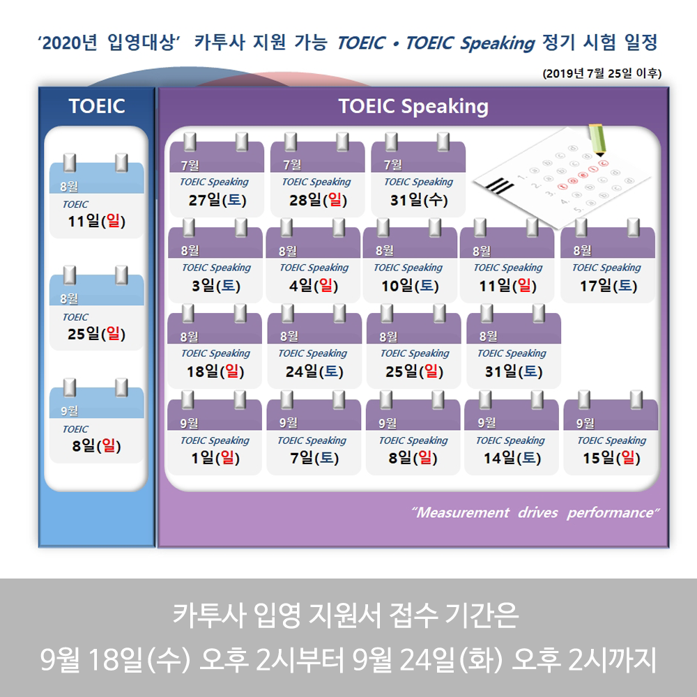 2020년 입영대상 카투사 지원에 활용 가능한 TOEIC·TOEIC Speaking 일정