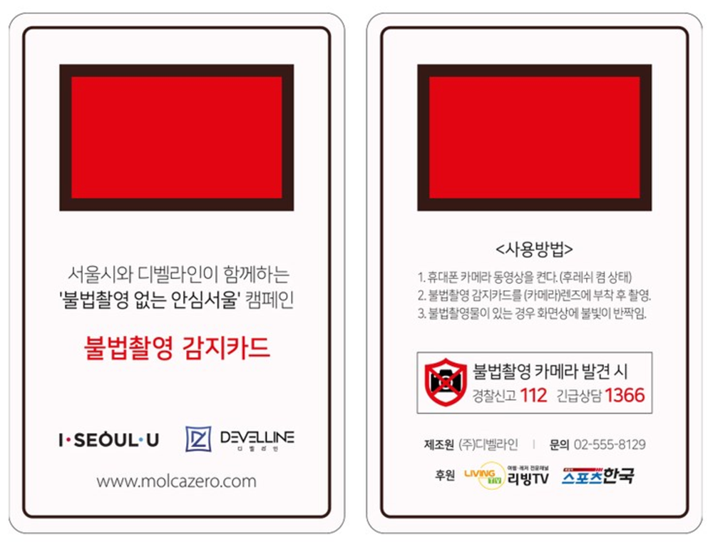 스마트폰 카메라에 부착하여 몰래카메라를 탐지할 수 있는 제품입니다. 저렴하고 신용카드 크기로 휴대가 간편하여 쉽게 몰래카메라가 설치되었는지 확인할 수 있습니다. 제품 정보 또는 구매에 대해 궁금하신 분들은 아래 링크를 참고하세요.
