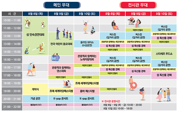 썸 페스티벌은 올해 처음 열리는 ‘섬의 날’ 기념행사로, ‘만남이 있는 섬, 미래를 여는 섬’이라는 주제로 전시회와 기념공연, 학술행사 등 축제는 물론 대형 물놀이장과 K-팝 콘서트 등 다양한 부대행사도 마련됩니다.