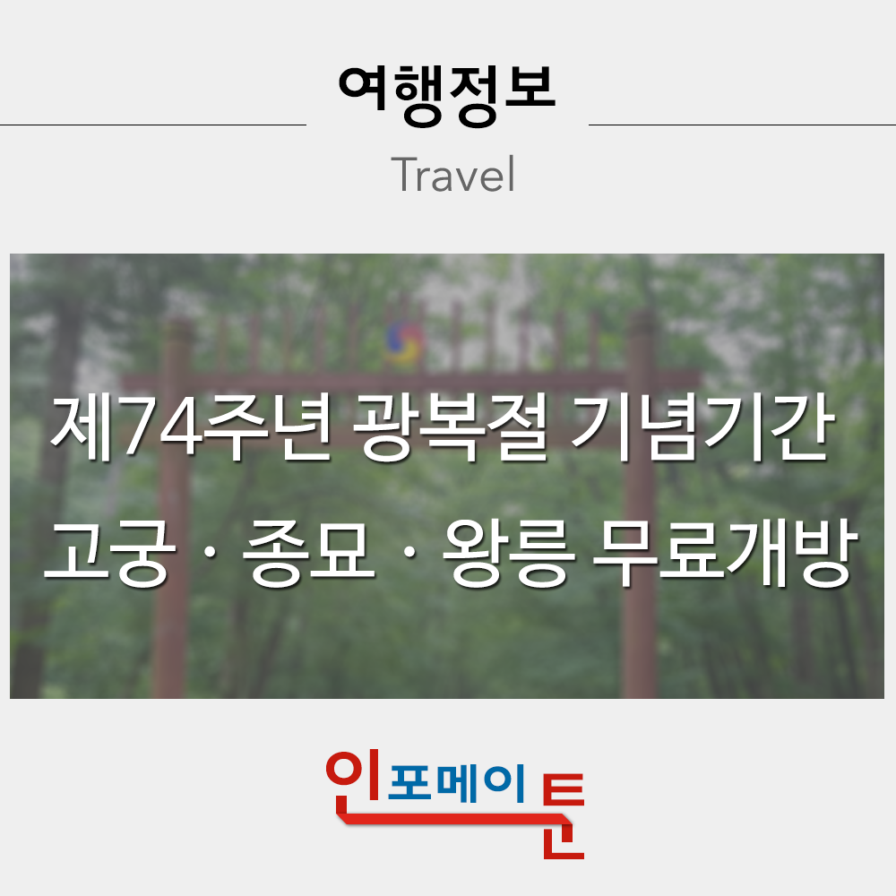 #여행정보 #국내관광 #광복절 #무료개방 #대한민국임시정부수립100주년 #고궁무료개방 #왕릉무료개방 #종묘무료개방