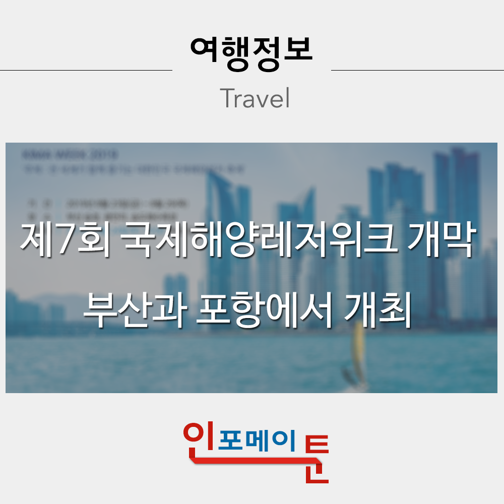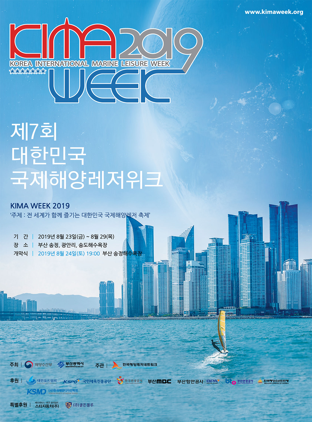해양수산부는 2019년 8월 17일(토)부터 9월 1일(일)까지 부산 송정·광안리·송도해수욕장과 포항 영일대해수욕장 일원에서 ‘제7회 대한민국 국제해양레저위크(이하 키마위크)’가 열린다고 밝혔습니다.
