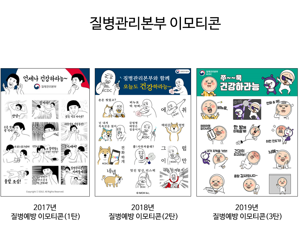 질병관리본부는 2017년부터 카카오톡 이모티콘(언제나 건강하라능(1탄), 오늘도 건강하라능(2탄))을 매년 출시하고 있으며, 많은 국민들이 관심을 갖고 카카오톡 친구를 맺는 등 큰 호응을 얻은바 있습니다.