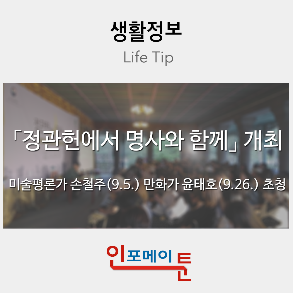 「정관헌에서 명사와 함께」 개최, 미술평론가 손철주(9.5.) 만화가 윤태호(9.26.) 초청